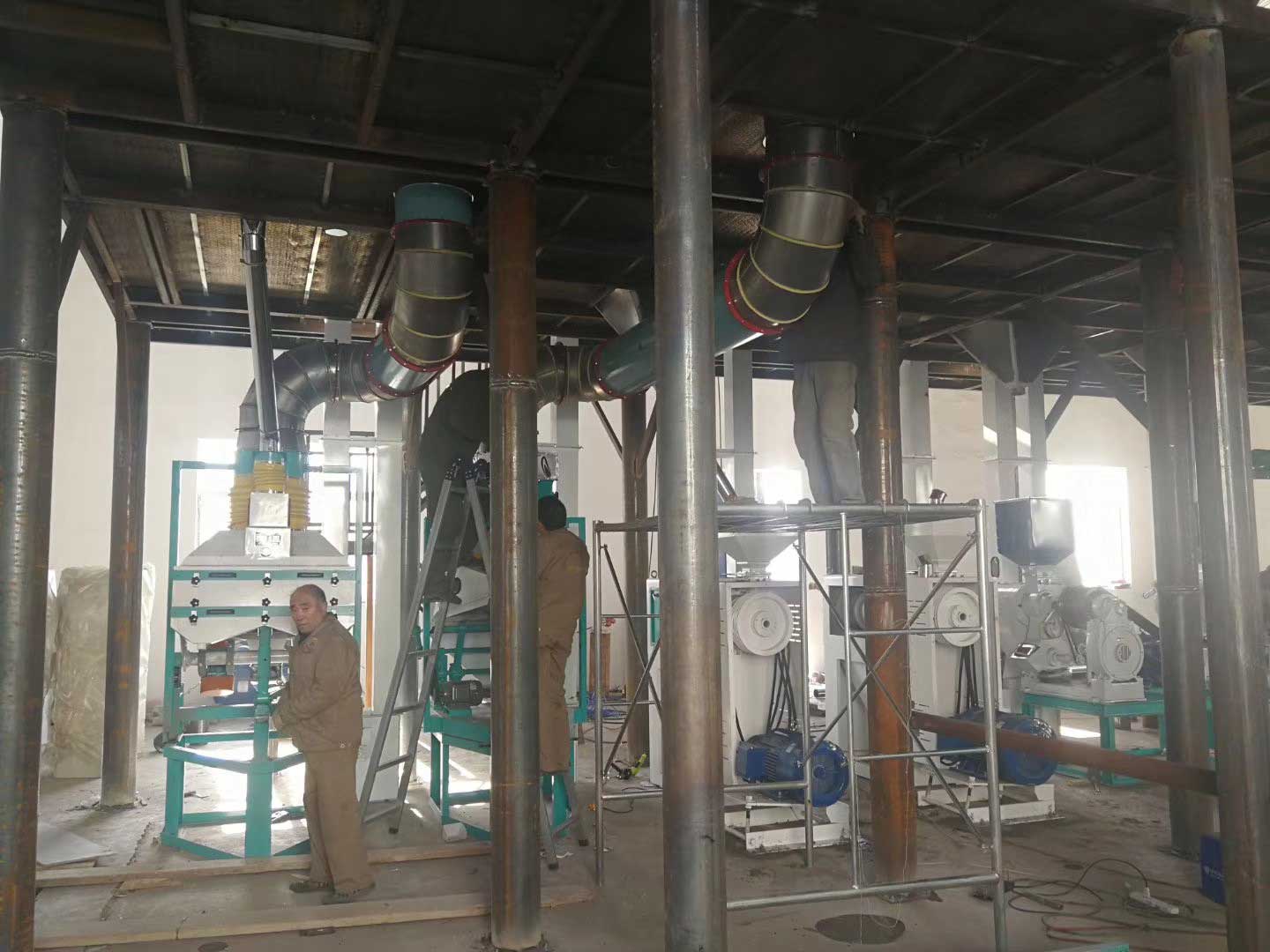 內(nèi)蒙古赤峰100噸玉米加工生產(chǎn)線安裝現(xiàn)場;